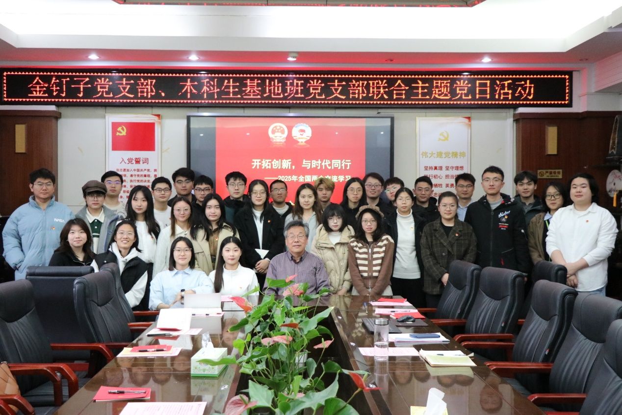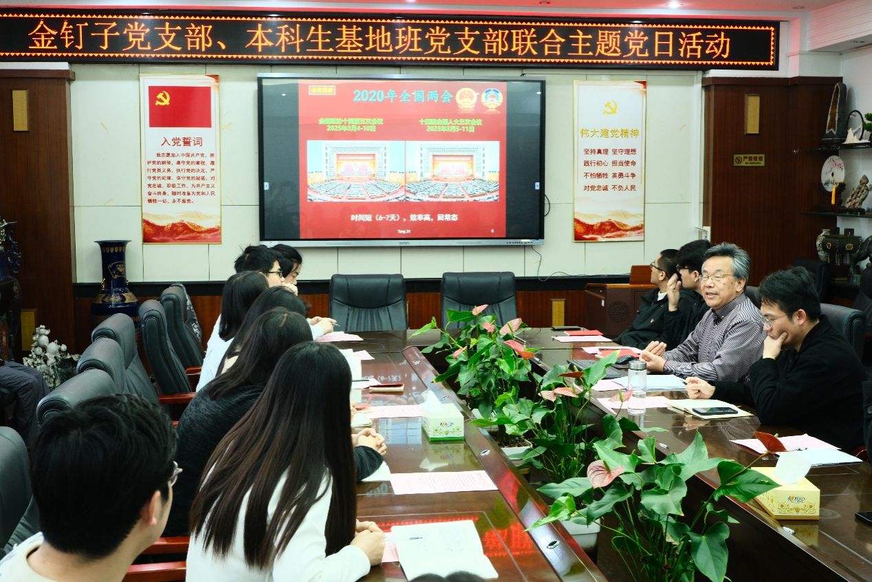 2025年3月28日,泥巴影院 金钉子党支部、本科生基地班党支部在主楼308会议室联合举办3月主题党日活动。特邀第十三届、十四届全国政协委员童金南教授列席主题党日,主讲2025年全国两会精神。主题党日由金钉子党支部副书记施翌主持。