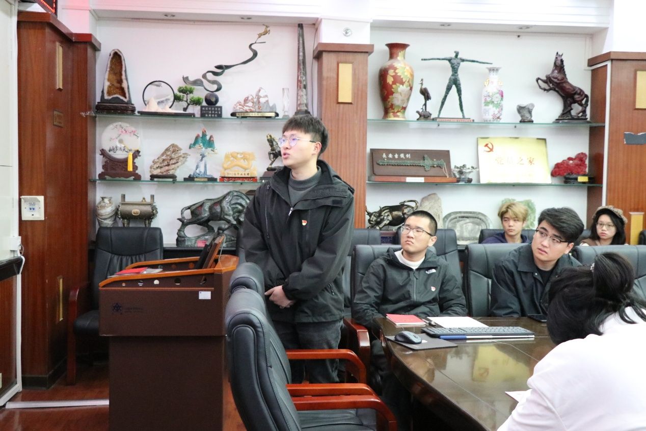 本科生基地班党支部程博航领学中央八项规定及实施细则精神和学校深入贯彻中央八项规定精神学习教育布置会精神。他带领党员们学习了中央八项规定的重要意义和具体内容,呼吁广大学生党员要践行“严在地大”的校风学风,为营造风清气正的校园环境贡献力量。