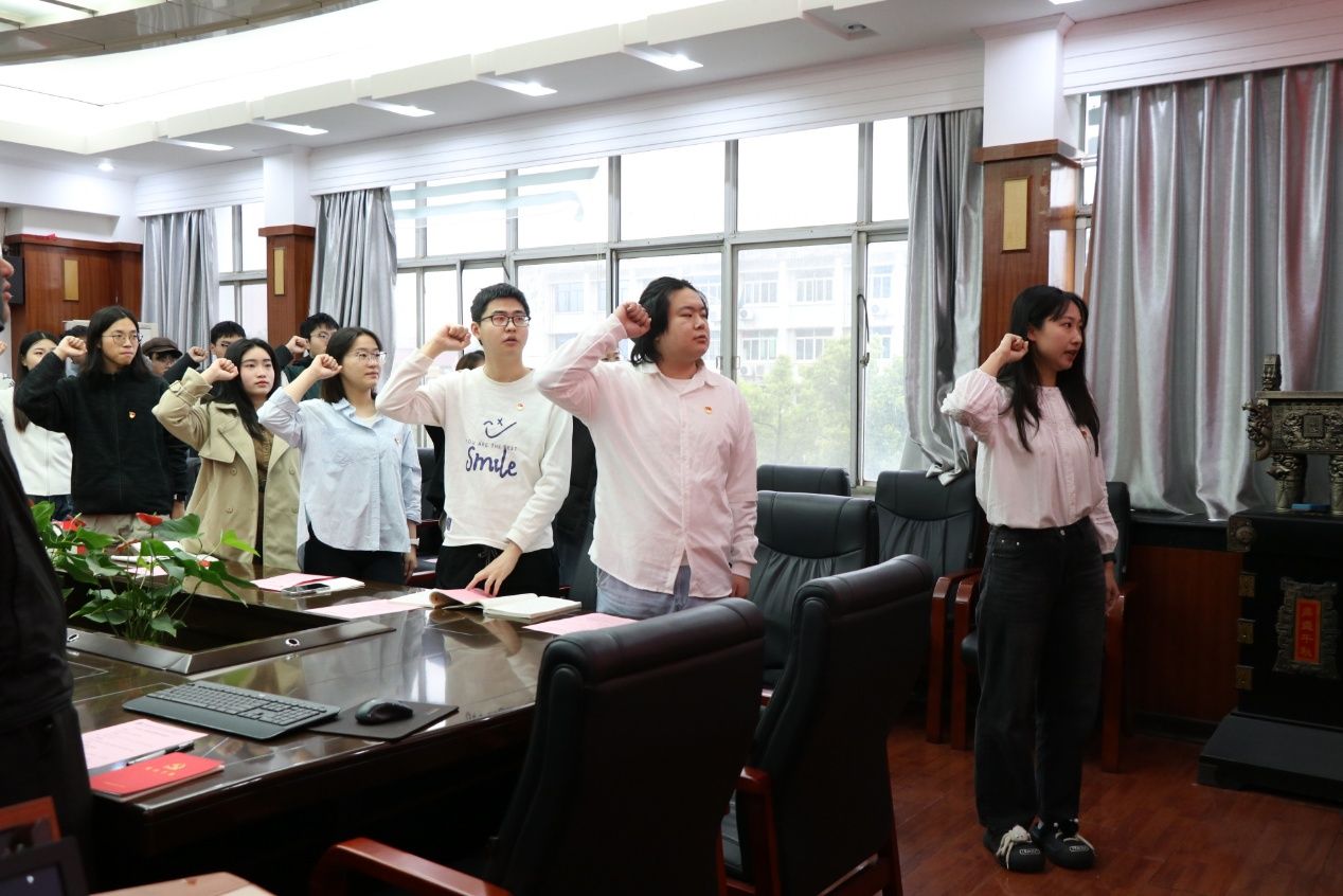 金钉子党支部徐华阳带领全体党员重温入党誓词,王璇组织党员们集体诵读《中国共产党章程》第二章“党的组织制度”的内容。