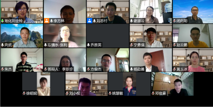 近日,地球化学系组织了一次别开生面的硕士论文网络集中答辩,19位硕士生分两个专题会场向答辩委员会宣读了自己的论文,并接受了评委老师的学术质疑。经过认真评议问询和充分讨论,答辩委员会以无记名方式一致通过了19位同学的论文答辩。硕士生进行论文集中答辩,是学院向研究生培养要质量的重要改革举措之一,已持续实施多年。仅地球化学系此次答辩的19位硕士研究生,就以第一作者发表T1论文4篇(含Nature Index论文1篇)、T2论文3篇、T4论文1篇,另有多位同学的论文工作创新明显,反映了地化系人才培养的突出成绩。答辩会议结束后,满怀着对学子们优异研学成绩的充分肯定和即将走向社会的依依不舍,地球化学系全体教师向同学们发出了充满深情的祝福和期望。