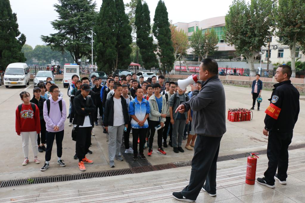 集中安全教育环节结束后,同学们在西区体育馆门前进行了消防演练,通过保卫处老师集中示范、同学们亲身实践体验,确保每位同学都能顾掌握灭火器的使用方法。