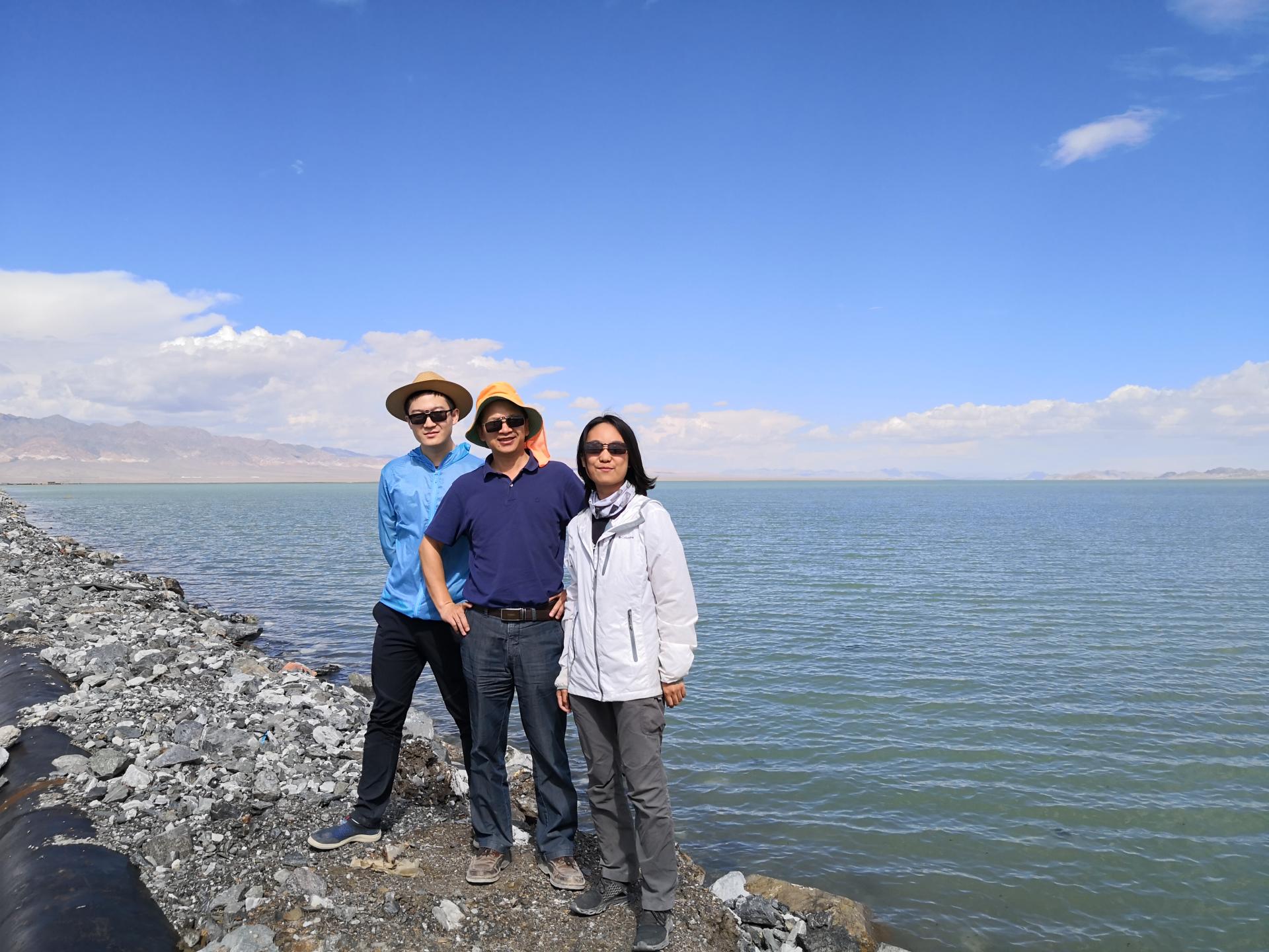 钱煜奇(左一)与导师肖龙(中)在柴达木进行类火星地貌考察
