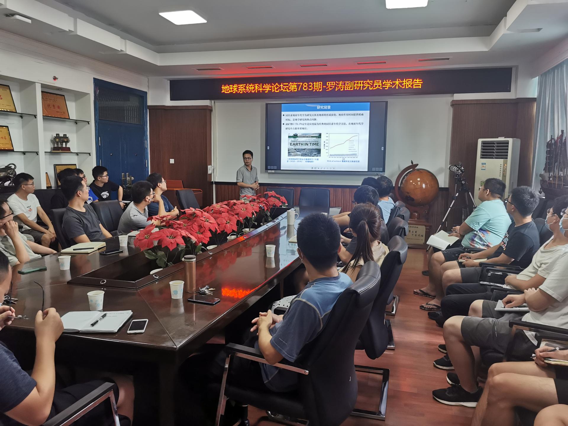 报告最后,罗涛副研究员就在场师生提出的离子探针基体效应、剥蚀池引入水蒸气的具体方式、低U副矿物定年前样品处理方式的细节、标样制取方法和流程、及使用金红石定年时基体效应对结果准确性的影响等问题进行了详细解答。