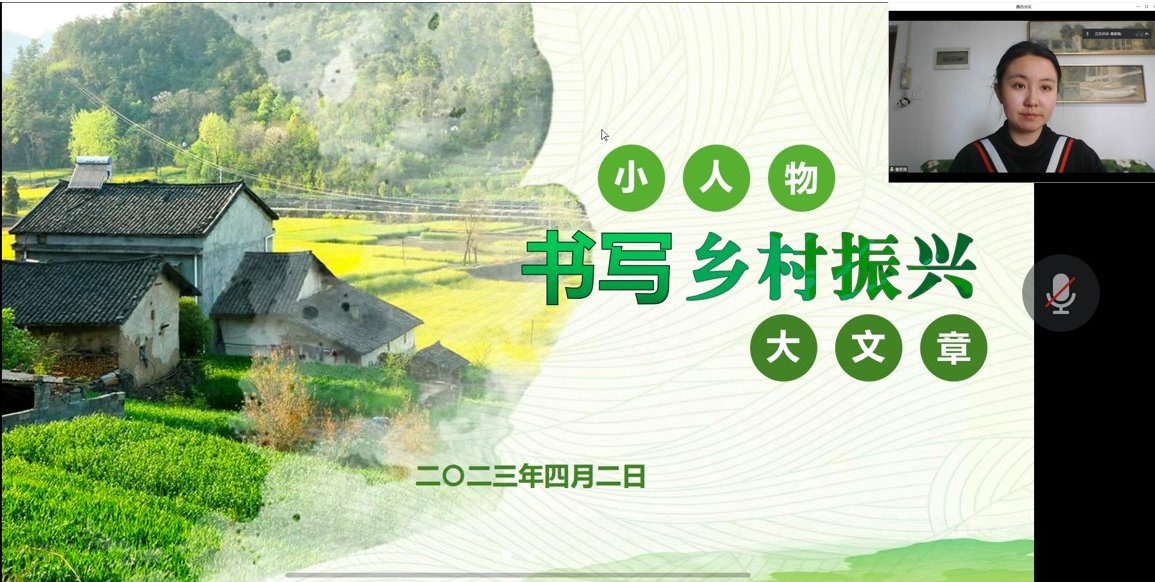 为深入学习宣传贯彻党的二十大精神、2023年中央一号文件精神以及脱贫攻坚精神,引导广大学生了解乡村振兴战略,持续开展“开学第一课”系列教育引导活动,坚定学生专业信心,推动学生立志专业报国,4月2日晚,泥巴影院 2012级本科生、现四川省宜宾市长宁县井江镇高硐村党支部副书记董紫薇学姐与2021级本科生线上交流分享。
