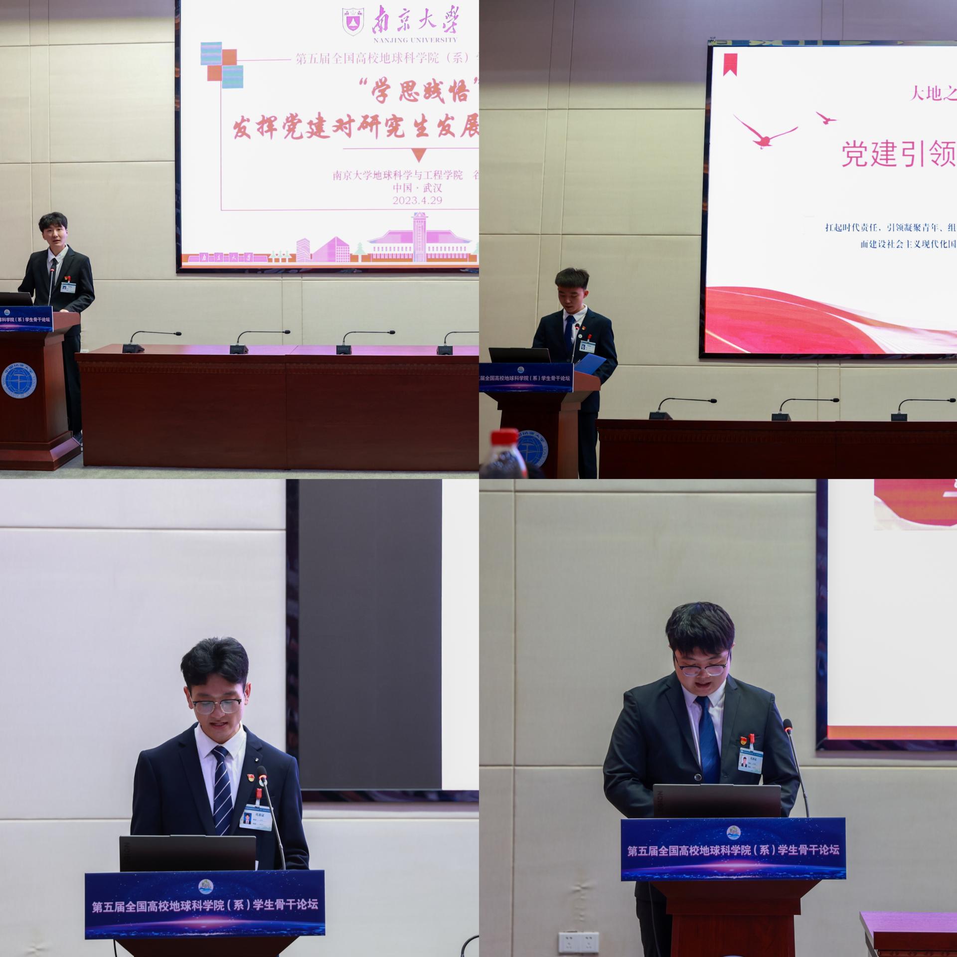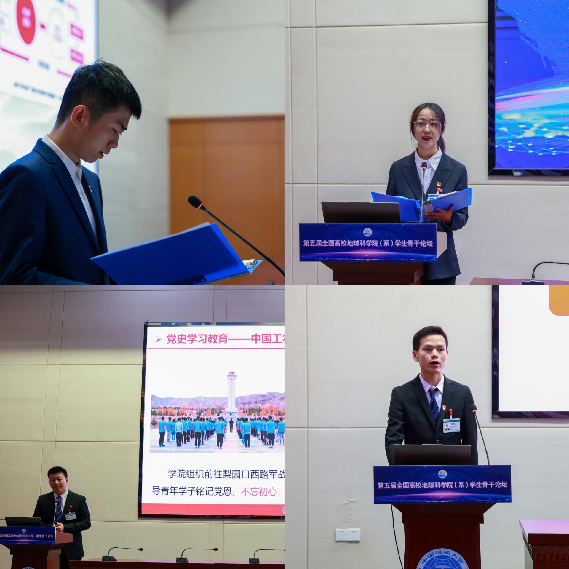 学生党支部建设分论坛的21位学生党员代表分别围绕“地学红色故事”“学习党的二十大精神工作经验”“党建+业务双融双促”进行主题发言。