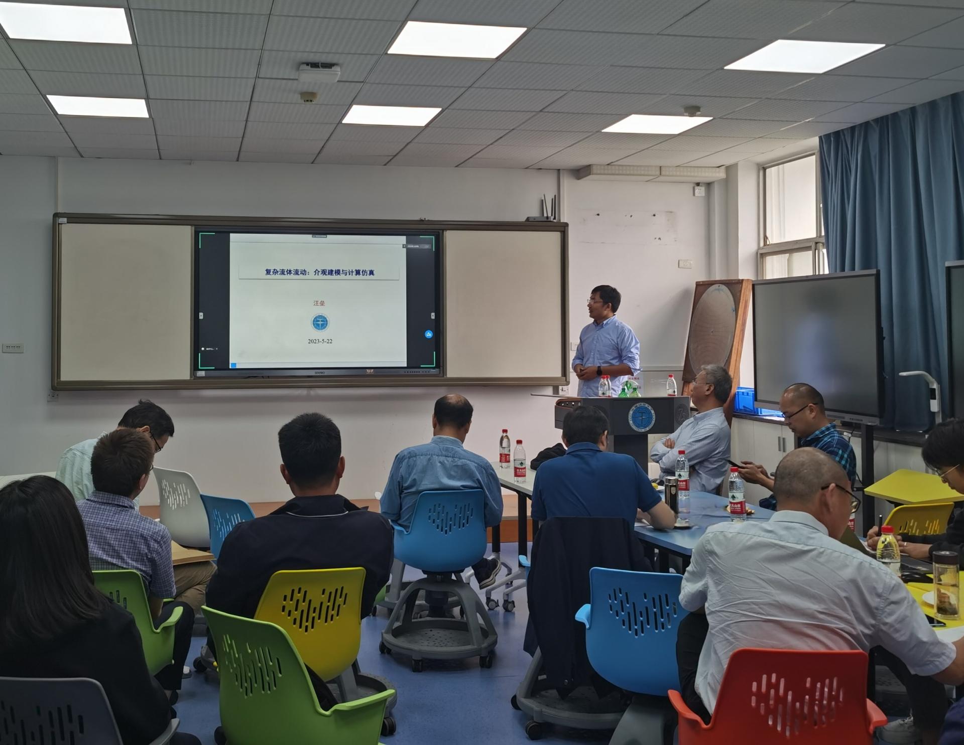 汪垒副教授题为“复杂流体流动:介观建模与计算仿真”的报告主要介绍了流体力学格子Boltzmann方法和高性能并行编程模式,同时展示了部分与地学结合的研究成果,如多孔介质中溶质输运问题、电流体动力学输运问题、气液相变传热问题。