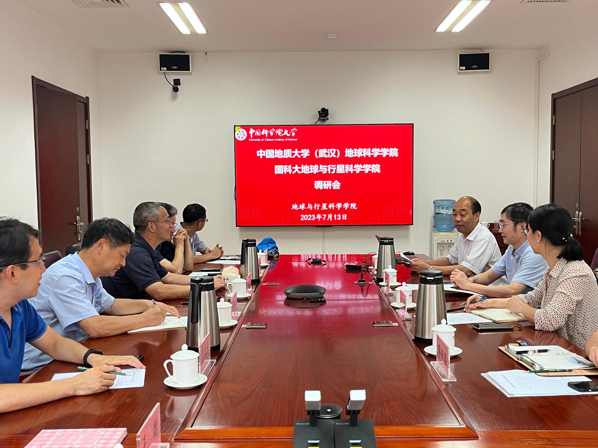 7月13日,学院调研组前往中国科学院大学地球与行星科学学院,与地星学院党委书记/副院长周元泽、党委副书记于立业及教师代表侯泉林、吴春明、李舢、王甜进行座谈交流。会议就党建思政、课程体系建设、学科建设、人才招生培养等方面进行了深入探讨和交流,互相听取学习有关经验做法,大家一致希望在未来加强交流合作,建立长效沟通机制,实现资源与信息的双向共享,不断推动双方深入合作的步伐,共同实现内涵式高质量发展。