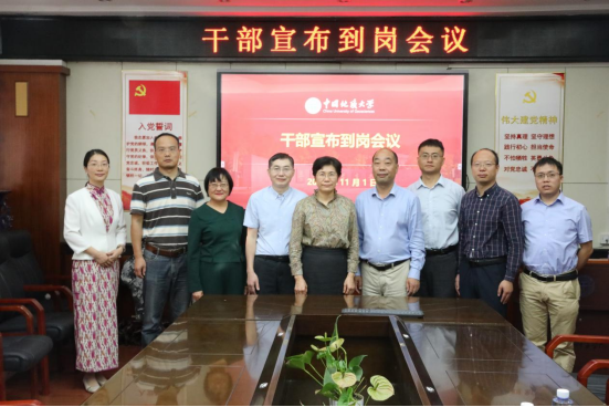 周刚书记发言,表示坚决拥护学校党委的决定,希望两位同志不负学校党委的重托和学院师生的期盼,在新岗位上有新作为、做新贡献,希望学院党政班子在校党委的领导下,团结一心,戮力前行,按照学校第十三次党代会的部署,大力推进一流学科建设和地学现代化,为实现地球科学领域国际知名研究型大学而努力奋斗。