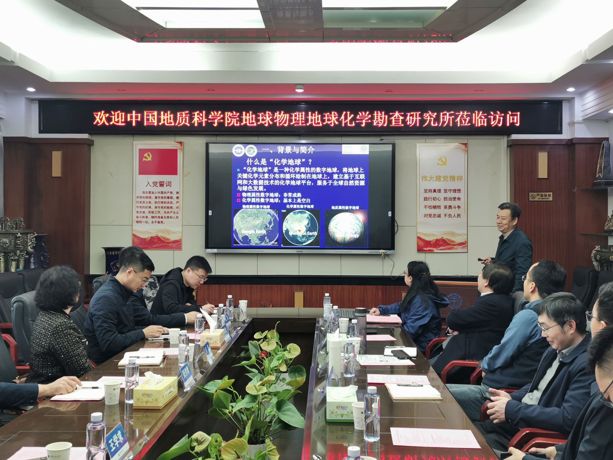 周刚书记对张作衡所长一行的到来表示热烈欢迎,对地球物理地球化学勘查研究所一直以来的支持和帮助表示感谢,并从人才培养、师资力量、科研水平等方面介绍了学院近年来的发展状况,希望双方能够尽快在联合申请重大项目、科技创新和人才联合培养等方面务实开展合作。