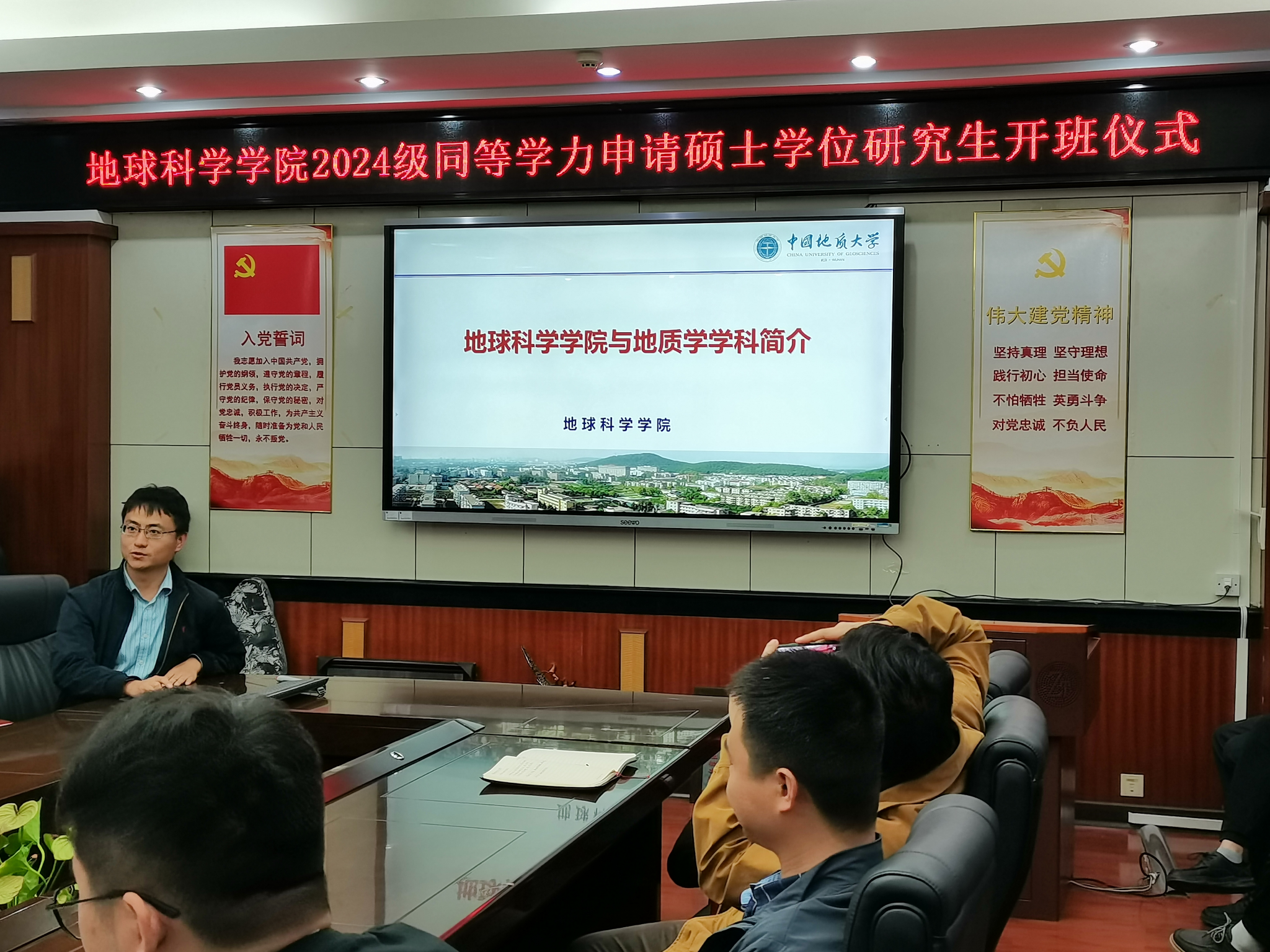 2024年4月30日上午,泥巴影院 2024级同等学力申请硕士学位研究生开班仪式在主楼地质斋举行。2024级学员共35人,来自13个省区的地勘、石油单位,尤以西北、西南学员居多,占半数以上。