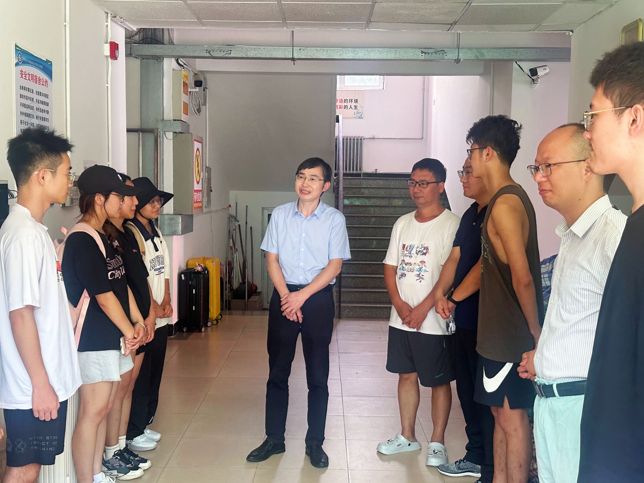 21日中午,周刚走进教师公寓看望实习教师。他一一走访教师宿舍,与教师们亲切交谈,详细了解野外路线教学情况和实习进展等,对坚持奋战在实习一线、付出大量心血和汗水的老师们表示感谢。在了解了北戴河近期连日降雨的情况后,周刚也提醒老师们务必注意自身安全健康,并为每位老师们送上了慰问品。