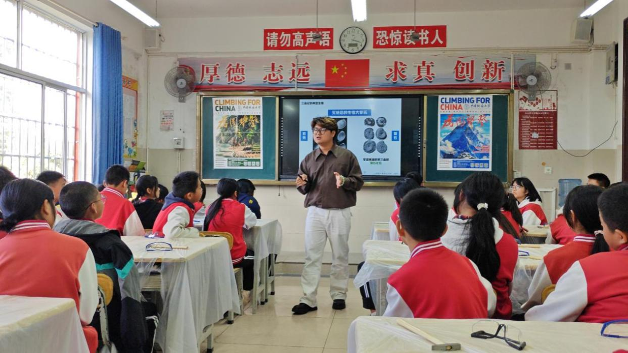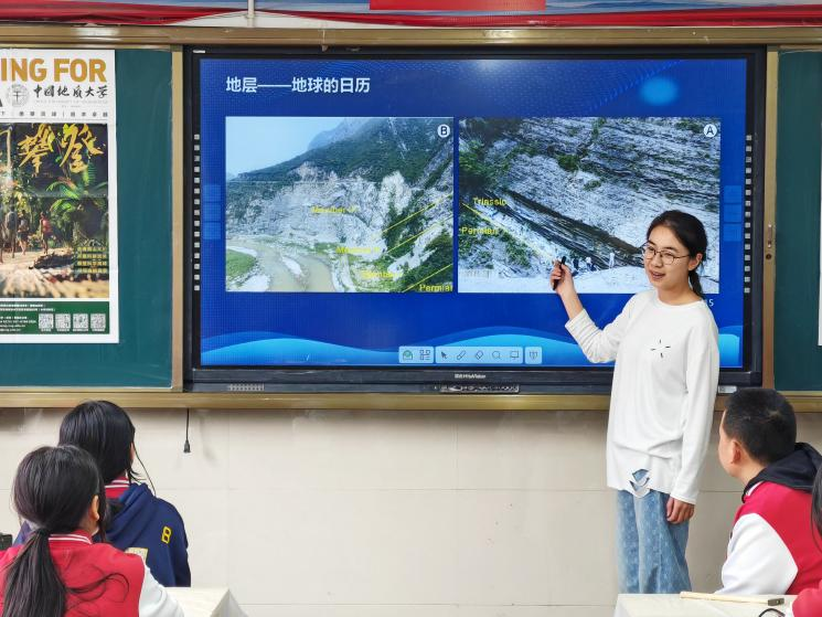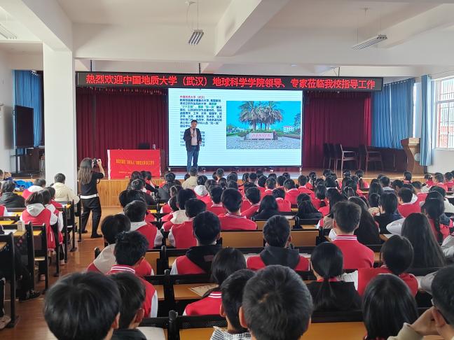 11月21日,泥巴影院 “地学之光”科普讲解队走进云南省楚雄龙江中学,与中国地质大学(武汉)第26届研究生支教团联合举办“把地球故事讲给你听”系列科普活动,旨在大力宣传弘扬科学家精神,引导广大中学生树立远大理想。中国地质大学(武汉)泥巴影院 教授马昌前、泥巴影院 党委副书记赵得爱、泥巴影院 “地学之光”科普讲解队成员姜昕、李槟馨、罗明辉、李月如参加本次活动。