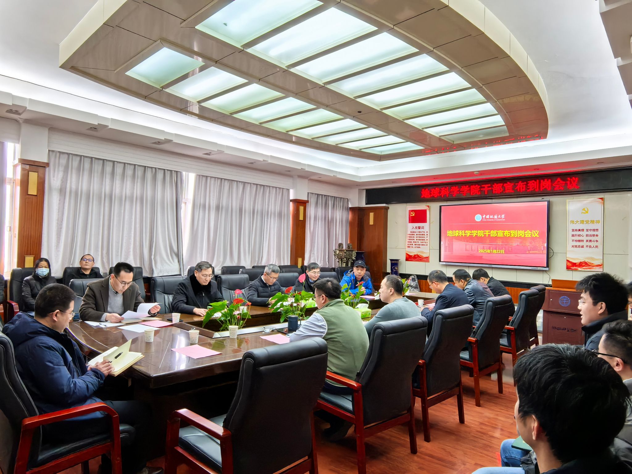李建威校长总结讲话并提工作要求。他充分肯定了学院在过去几年来取得的成绩,希望周刚同志到新的岗位上能为学校党建工作做出新的贡献。希望刘世勇同志尽快熟悉学院基本情况,适应新岗位需求,抓好班子建设,走好群众路线,以高质量党建引领学院高质量发展。希望两位学术副院长注重调查研究,认真履职尽责,以实际行动推动学院工作再上新台阶。同时,他对学院领导班子提出了工作要求,要聚焦《教育强国建设规划纲要(2024-2035年)》的目标要求,做好超常规发展的统筹谋划,争分夺秒做好“十四五”收官和“十五五”规划工作,大力推进“双一流”建设和地学现代化,谋划传统学科转型升级,抢占制高点,为实现地球科学领域国际知名研究型大学而努力奋斗。
