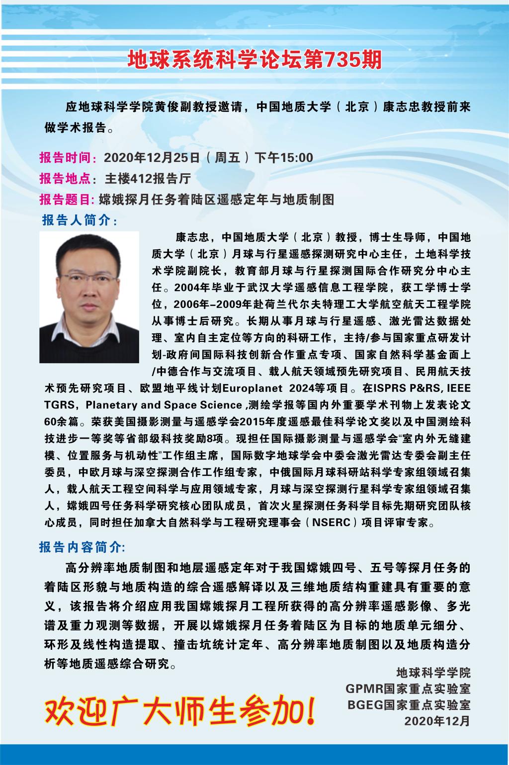 【12月25日】中国地质大学(北京)康志忠教授学术报告会