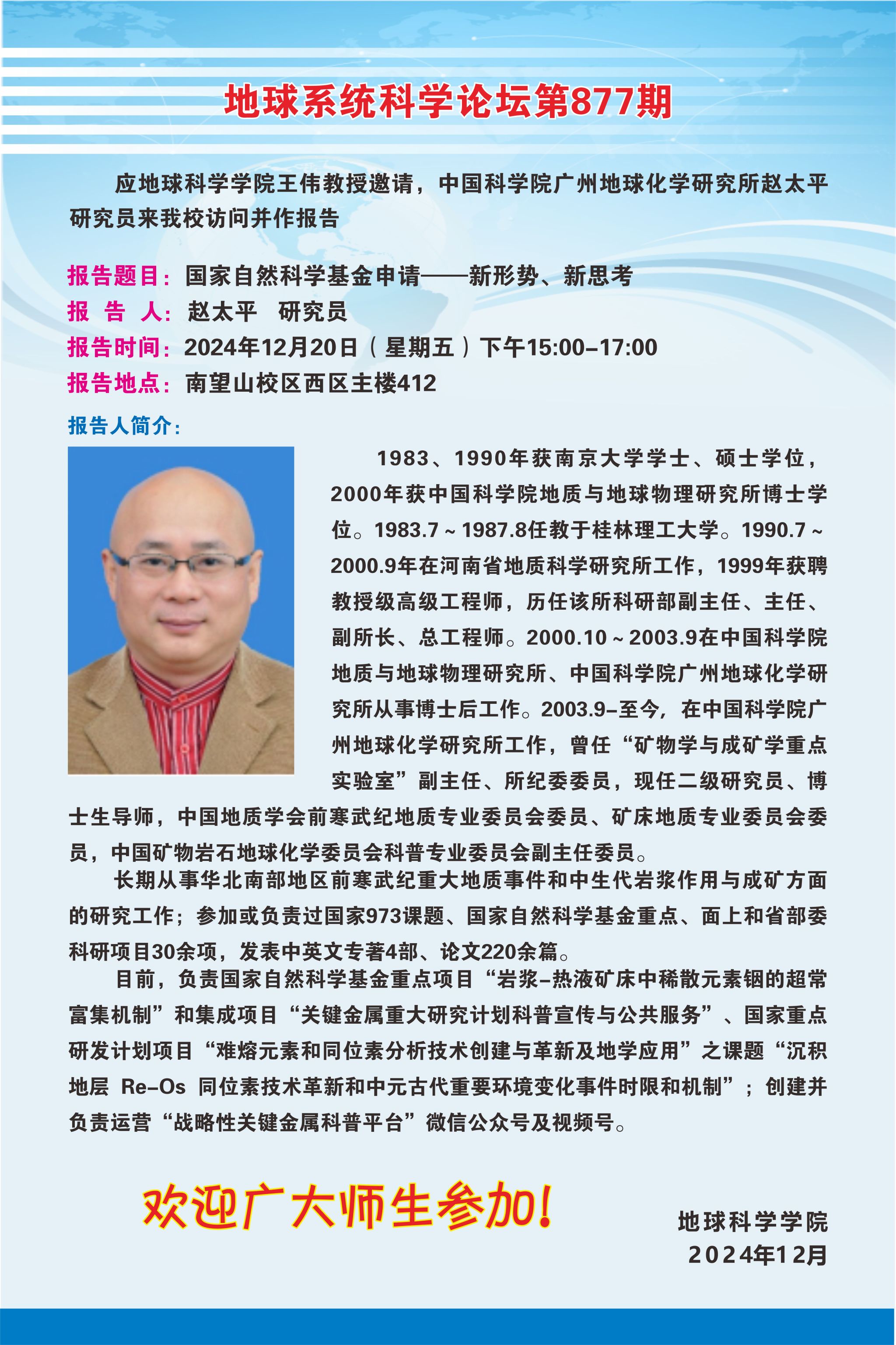 【12月20日】地球系统科学论坛第877期-赵太平研究员