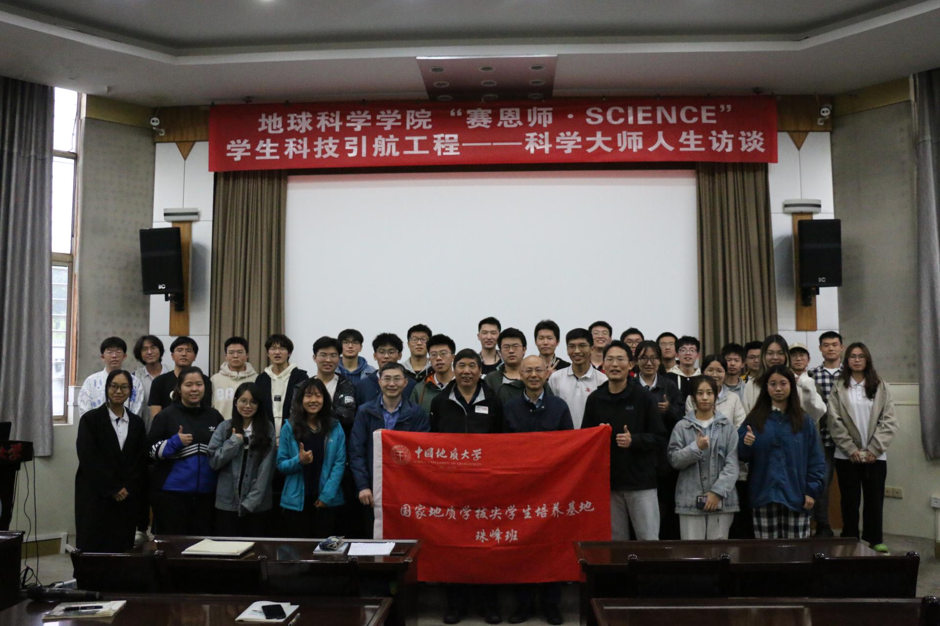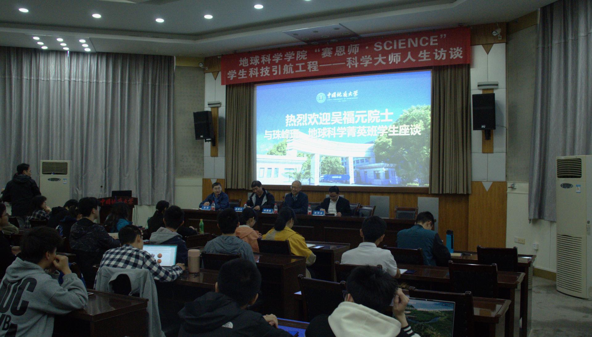 4月22日,在第54个世界地球日来临之际,中国科学院地质与地球物理研究所吴福元院士做客泥巴影院 “赛恩师·SCIENCE”科学大师人生访谈,与珠峰班、地球科学菁英班学子座谈。副校长刘勇胜主持座谈,泥巴影院 党委书记周刚、李四光学院常务副院长单华生参加座谈。