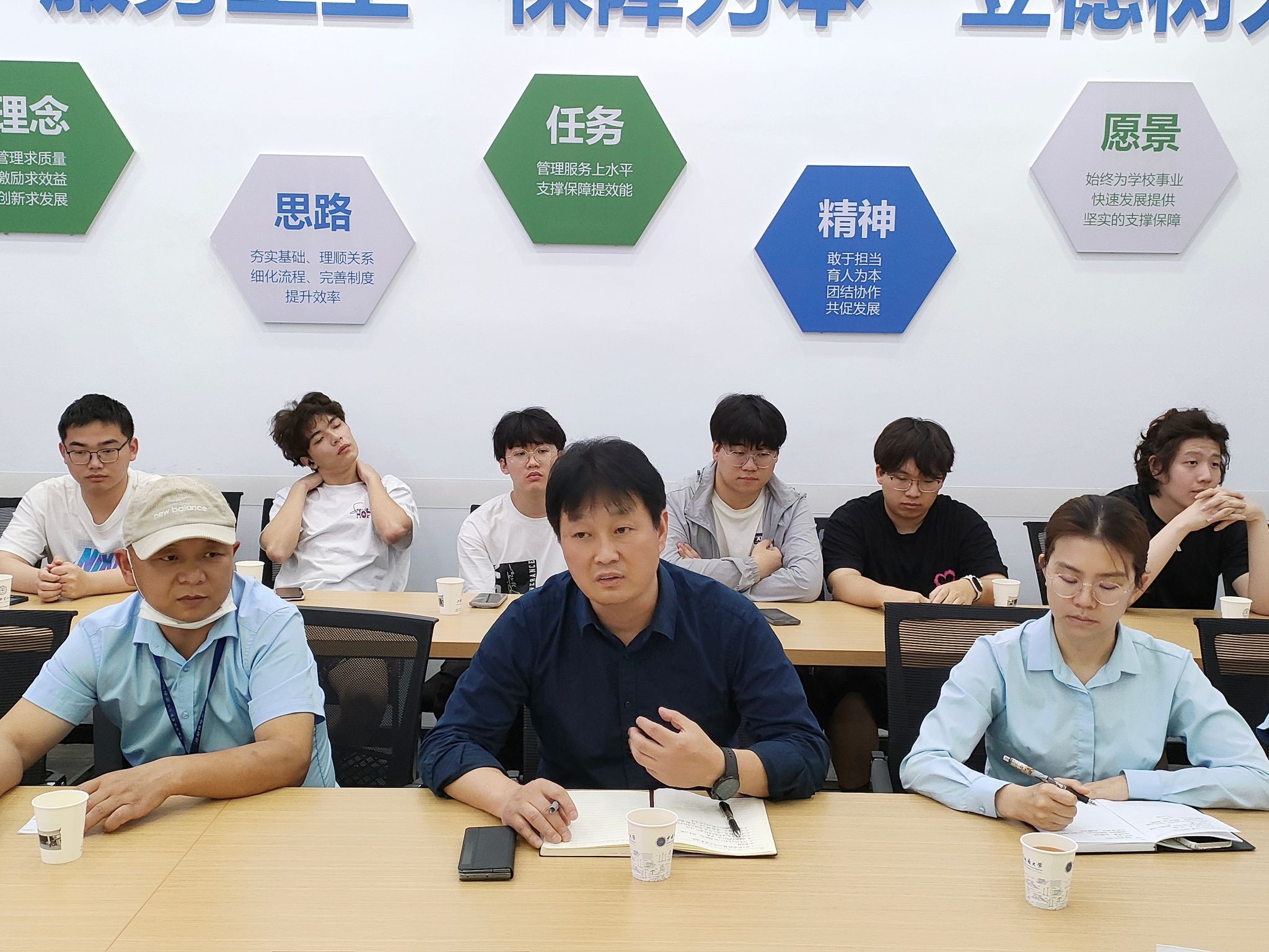 下午2点,泥巴影院 党委副书记赵得爱及辅导员滕笑丽与2023级珠峰班30余名学生齐聚饮食服务中心北区会议室,与饮食服务中心相关领导、工作人员展开座谈交流。