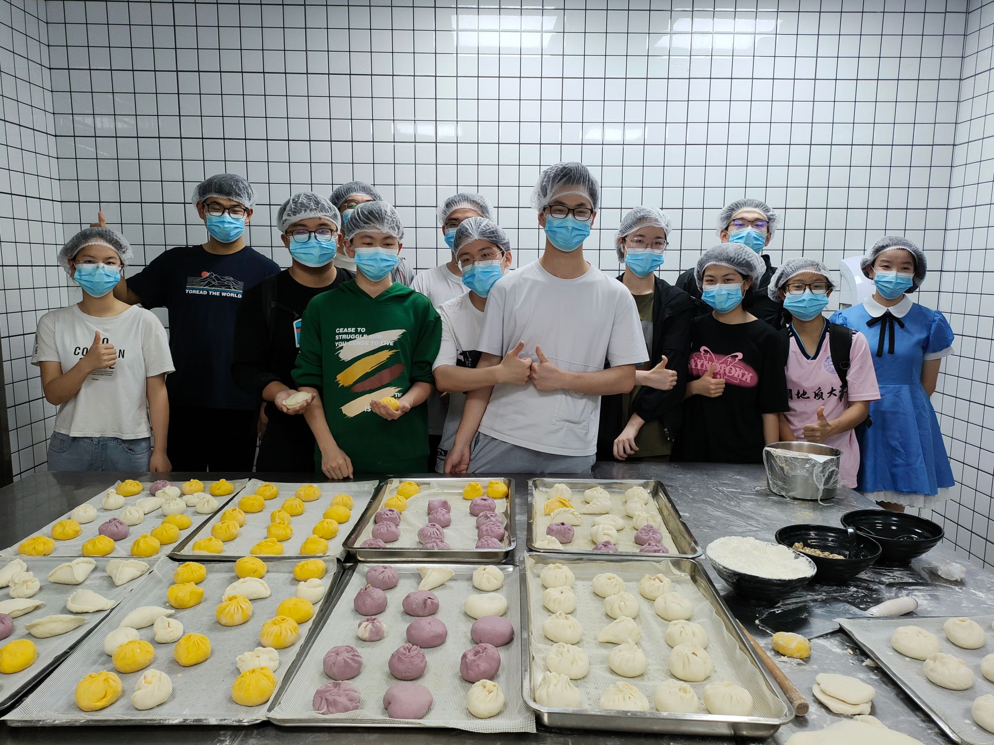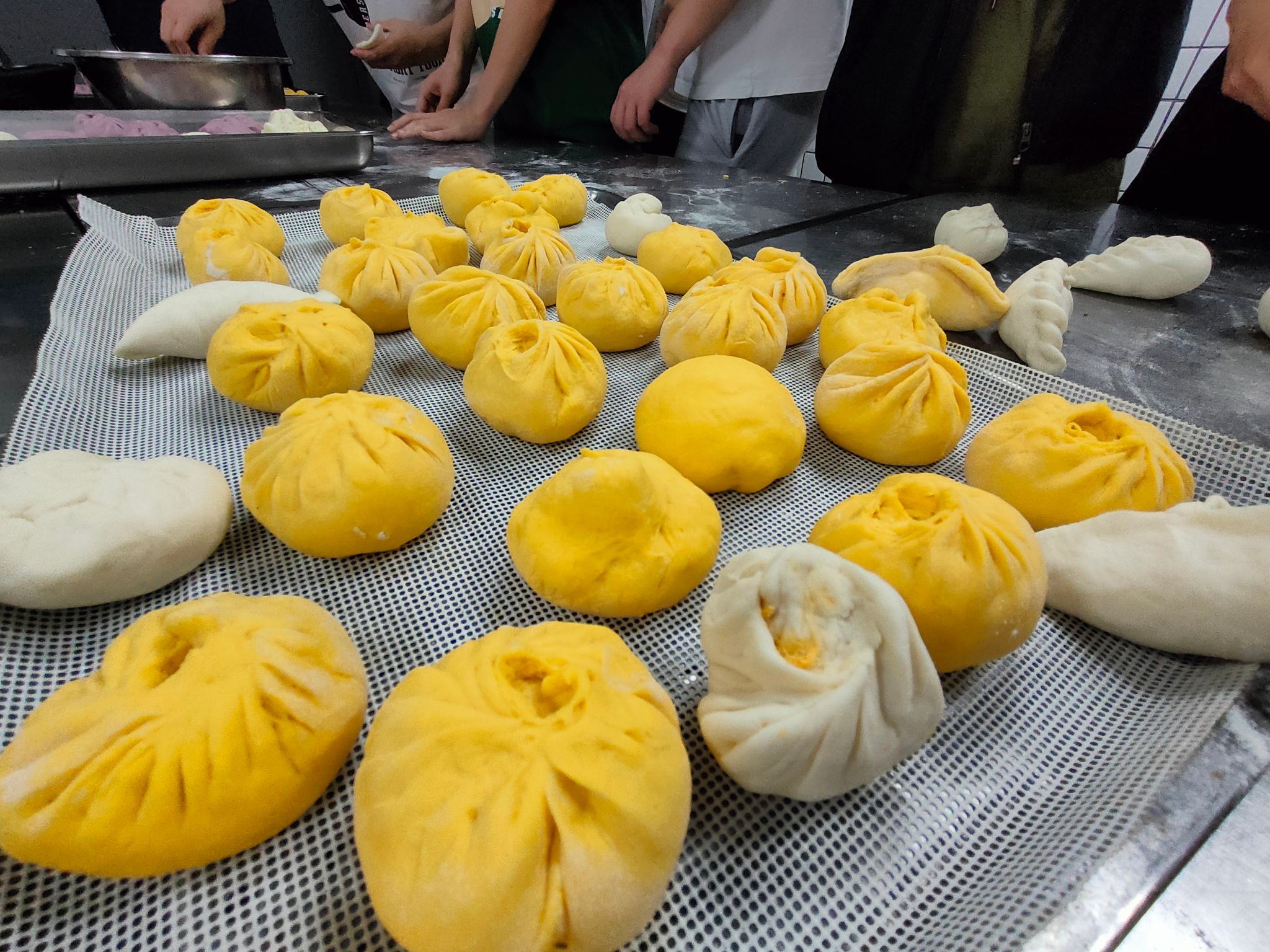 半个小时的等待后,包子新鲜出炉,学生们终于品尝到了自己亲手制作的面点,纷纷拍照留念、分享自己的劳动成果。