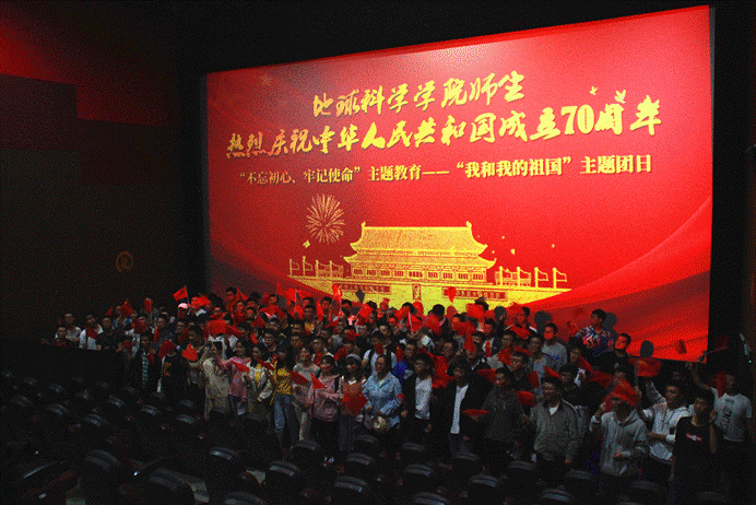为唤起学生对祖国发展历史的共同记忆,进一步激发,学生的爱国情怀,10月19日下午,泥巴影院 开展了“不忘初心,牢记使命”主题教育暨“我和我的祖国”主题党团日活动。此次活动将活动现场从校园搬到了影院,大家一同观看影片《我和我的祖国》,回顾新中国70年发展历史,感受祖国沧桑巨变,坚定民族自信心。全院132位学生党员、团员代表参加了此次活动,学院团委滕笑丽老师主持本次主题党团日活动。